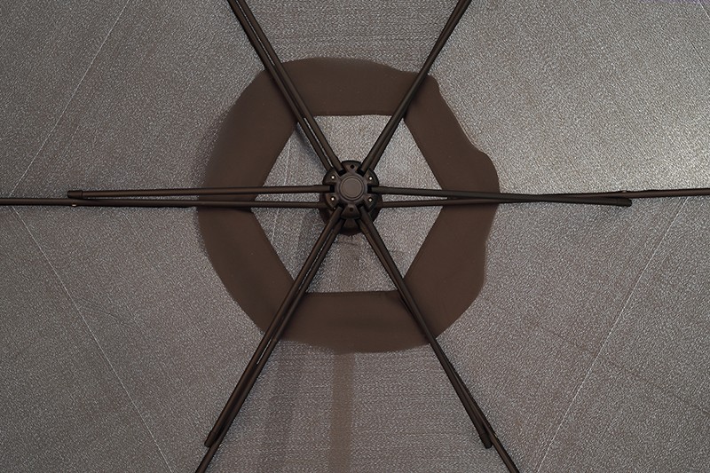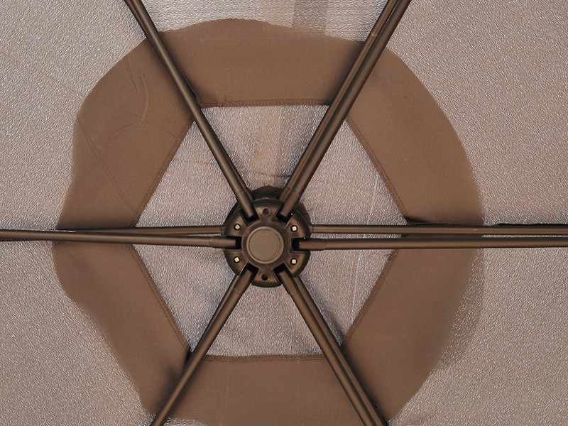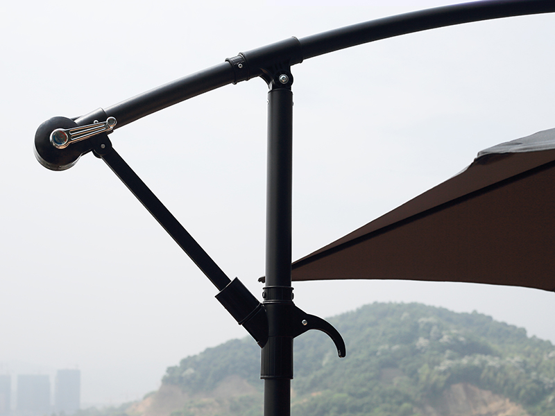 3米/6骨香蕉傘,全鐵,48毫米鋁立桿,42毫米鐵吊桿,12X18毫米鐵骨,180克布,無(wú)邊。
